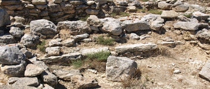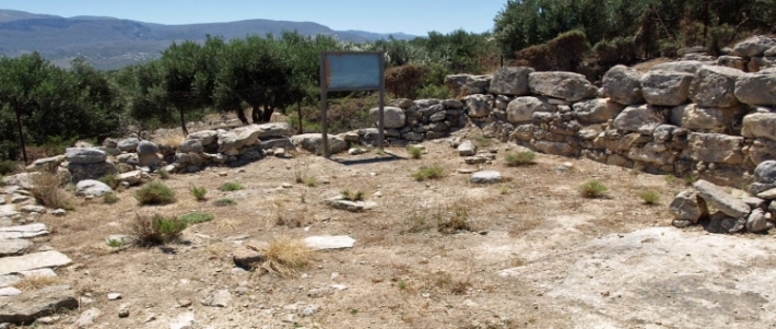 Στη θέση «Ρίζα», το 1952, ο Ν. Πλάτων επιχείρησε μια μικρή δοκιμαστική ανασκαφή όπου ήδη ήταν ορατός ένας ισχυρός αρχαίος τοίχος. Κατά την ανασκαφή εμφανίστηκαν οι εξωτερικοί τοίχοι μιας οικίας, οι οποίοι ήταν κατασκευασμένοι από μεγάλους πελεκητούς λίθους.