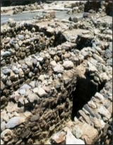 Η πόλη περιέβαλε κεντρικό κτήριο και καταλάμβανε ολόκληρο το λόφο. Στους πρόποδες αποκαλύφθηκε κυκλώπειο τείχος με τρεις πύργους (5Χ5μ). Από πλακόστρωτους δρόμους, ένας από τους οποίους οδηγούσε στο κεντρικό κτήριο, είχαν πρόσβαση τα μεγάλα διόροφα σπίτια, τα οποία ήταν κτισμένα πάνω σε άνδηρα, ανεξάρτητα το ένα από το άλλο. Στο ισόγειο υπήρχαν αποθηκευτικοί και εργαστηριακοί χώροι, ενώ στον όροφο ήταν η κυρίως κατοίκηση.